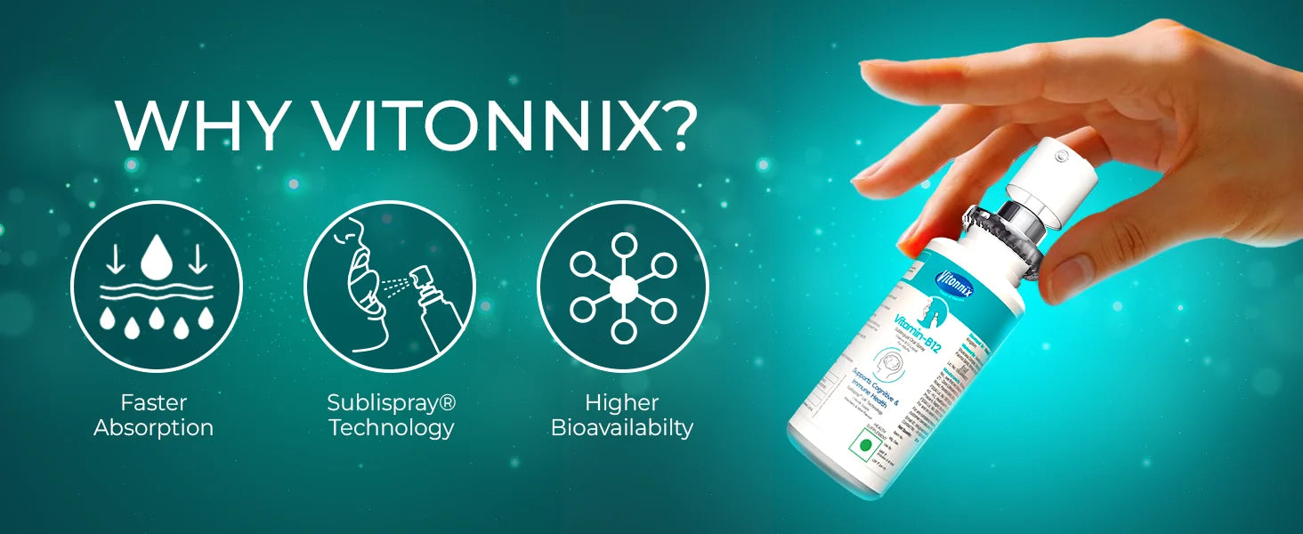 Vitonnix Vitamin B12 oral spray supports energy production, nerve health and red blood cell formation for a healthier version of you.