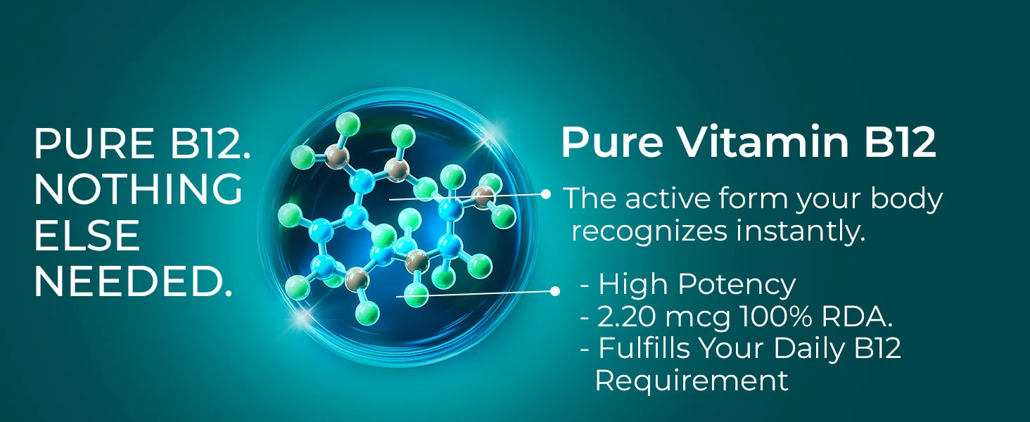 • Boosts Energy & Fights Fatigue : Vitamin B12 plays a key role in energy production by converting food into fuel needed to power the body. A simple spray of our Vitamin B12 sublingual formula ensures quick absorption and effective results.