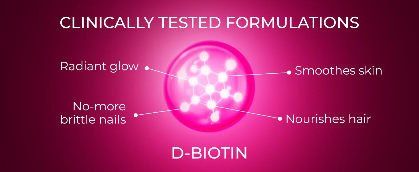 Strengthens And Protects Nails : It enhances nail strength by promoting natural growth and reducing breakage. This biotin supplement for nails helps you bid farewell to nail brittleness.