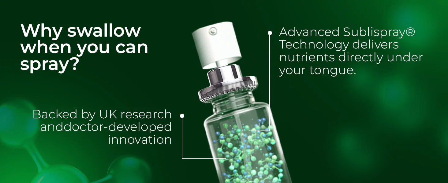 Keeping your eye health in check has never been this easy! Formulated with sublingual technology, this spray helps prevent macular degeneration.