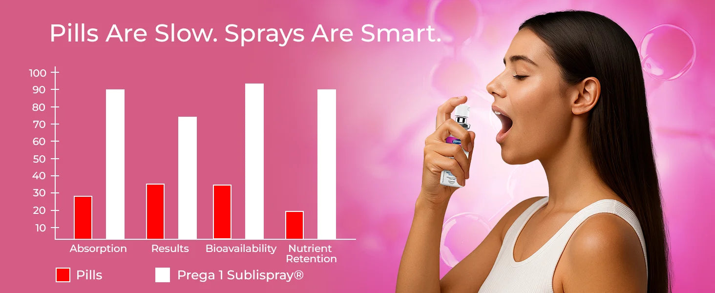 Prega-1 Spray, a fundamental supplement for your first trimester ensures that your body gets all prenatal vitamins, pregnancy nutrients, and the goodness of folic acid.