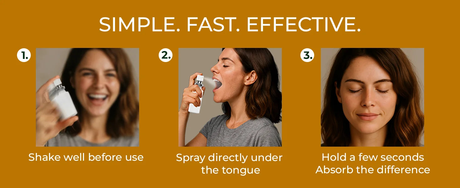 • Spray directly under the tongue